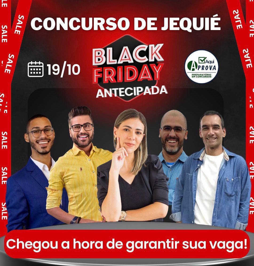 O governador do Estado da Bahia assegurou que no dia 28/10, dia do Servidor Público, anunciará um pacote de concursos públicos e as áreas contempladas. E para garantir que você esteja preparado, o preparatório em concursos Aqui Aprova fará a Black Friday da Aprovação no dia 19/10, para obter mais informações siga o Instagram @aquiaprovapreparatorio e comece desde já sua preparação com foco, direcionamento e método.