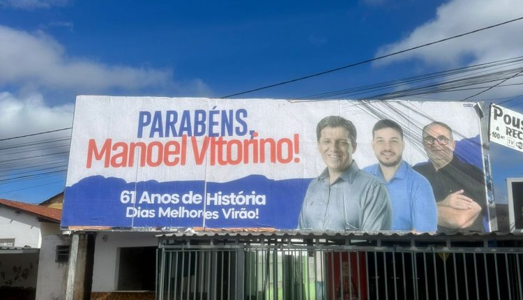 Com imenso outdoor, Zé Cocá, Hassan e Vinícius Costa saúdam aniversário de Manoel Vitorino