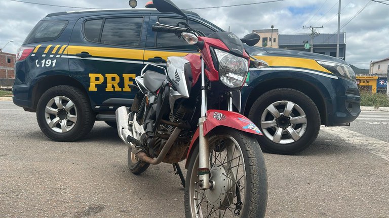 A Polícia Rodoviária Federal (PRF) recuperou uma motocicleta adulterada associada a um registro de furto. A ação ocorreu no km 810 da BR-116, no município de Manoel Vitorino, no sudoeste baiano, durante fiscalizações de combate ao crime da Operação Rodovida 2025/2026.