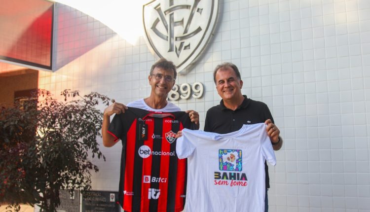 Ampliando o leque de instituições e empresas parceiras do Bahia Sem Fome, o Esporte Clube Vitória manifestou apoio ao programa do Governo do Estado. O presidente do clube, Fábio Mota, recebeu o secretário estadual de Comunicação Social, André Curvello, na tarde desta sexta-feira (28), no Barradão, para firmar mais uma parceria para o programa. O secretário levou a camisa do Bahia Sem Fome para o presidente, que retribuiu o presente.