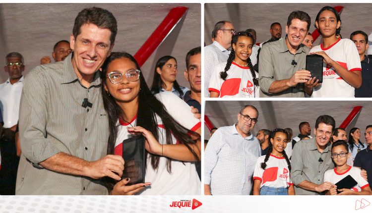 A Prefeitura de Jequié, através da Secretaria de Educação, dá mais um passo para o aperfeiçoamento da Educação por meio da inserção da tecnologia, com a entrega de 6.640 mil tablets para os estudantes do 6º ao 9º ano das escolas municipais, e 1.080 novos notebooks aos professores. A solenidade de entrega simbólica das novas ferramentas pedagógicas aconteceu nesta terça-feira, 4, durante o evento de entrega das obras de modernização da Escola Anísio Teixeira, no bairro Jequiezinho. Estiveram presentes, o prefeito de Jequié, Zé Cocá; o deputado estadual, Hassan Iossef; a secretária de Educação, Elvia Sampaio; demais secretários municipais; vereadores; demais autoridades; a equipe técnica da Secretaria de Educação; professores; a equipe da unidade escolar; pais e alunos da escola.