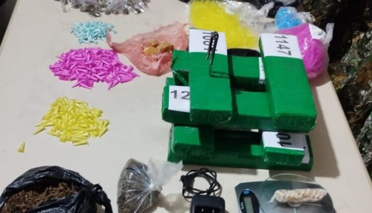 Na busca, os militares encontraram a sacola abandonada e, dentro do imóvel, um arsenal de drogas e equipamentos usados pelo crime organizado. Entre os materiais apreendidos estão: 8 tabletes de maconha (6,9 kg); 430 g de maconha em porções menores; 336 pinos de cocaína; 149 buchas de maconha; 135 pedras de crack; 67 g de crack em pedras maiores; 89 comprimidos de droga sintética; 17 munições calibre 5.56 mm; 01 munição calibre .380; 01 carregador de pistola; 02 conjuntos de roupas camufladas; 03 balanças de precisão; além de embalagens para drogas, faca, escova e óleo de manutenção de armamentos e carregador de rádio comunicador. Informações e Foto: Blog Giro Ipiaú
