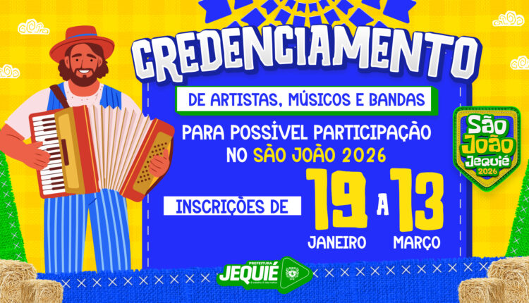 A Prefeitura de Jequié, através da Secretaria de Cultura e Turismo, publicou nesta sexta-feira, 16, a abertura do cadastro oficial de atrações artísticas para possível participação no São João de Jequié 2026.