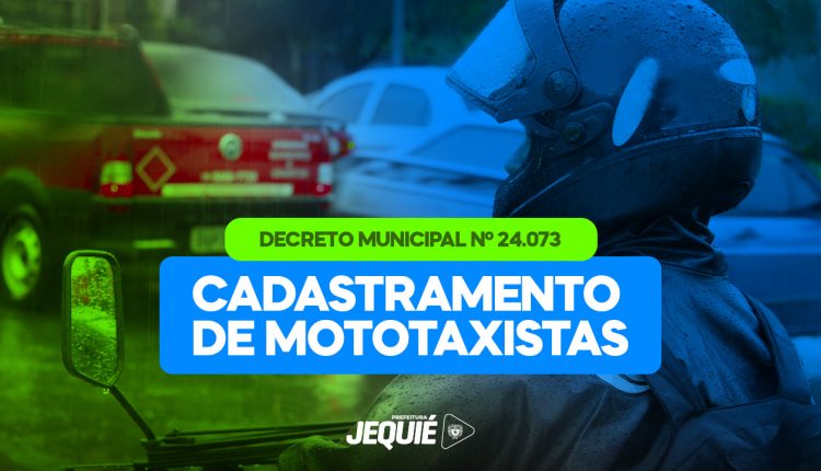 A Prefeitura de Jequié, através da Secretaria de Governo e Superintendência Municipal de Trânsito (SUMTRAN) publicou na tarde desta terça-feira, 17, o Decreto Municipal Nº 24.073, que dispõe sobre o cadastramento dos prestadores de serviço de mototáxi no âmbito do município de Jequié, considerando a necessidade de ordenamento do espaço urbano obedecendo os critérios de engenharia de tráfego, de forma a promover a fluidez do trânsito e uma oferta de vagas compatível com a demanda verificada; considerando a necessidade de organização e padronização do serviço de mototáxi e a necessidade de um acompanhamento e maior controle na emissão das permissões e alvarás; considerando a necessidade de adequações estruturais nos pontos de prestação de serviço, possibilitando um maior conforto e segurança, tanto para o prestador quanto para o usuário.