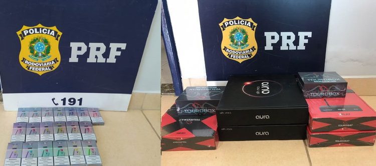Por volta das 15 horas, a equipe da PRF deu ordem de parada ao veículo de transporte interestadual de passageiros. Durante a inspeção no compartimento de bagagem, foram encontradas duas caixas de papelão, transportadas como encomenda. Ao abrir as caixas, os policiais descobriram 98 aparelhos de TVBOX e 19 dispositivos de cigarro eletrônico.