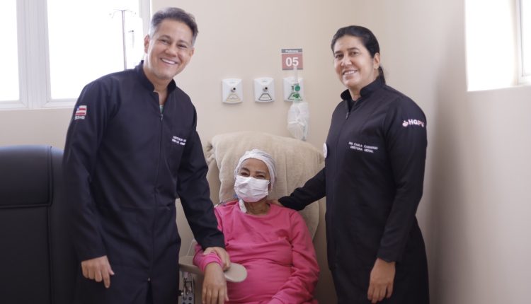 A UNACON HGPV realizou a primeira sessão de quimioterapia ontem (19). A paciente, paciente Maria do Carmo Ribeiro Nascimento, de 63 anos, moradora de Jequié, foi recebida pela equipe multiprofissional, pelos diretores Ana Paula Camargo e Neffison Santana e pela médica oncologista Luana Cartaxo, a família agradeceu o acolhimento da equipe e a oportunidade de ter o tratamento e assistência perto de casa.