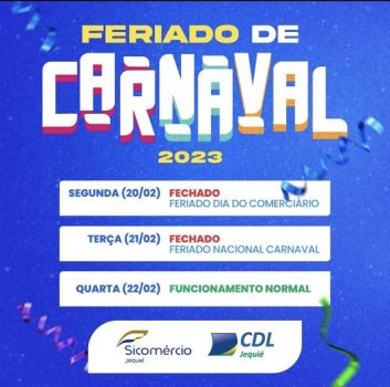 Certamente tem algumas empresas que vão optar por abrir durante todo o período do carnaval, onde já faz parte de um acordo entre patrão e funcionário. O blog Jequié Urgente, vai está nas ruas de Jequié e na região, mantendo os nossos leitores muito bem informados.